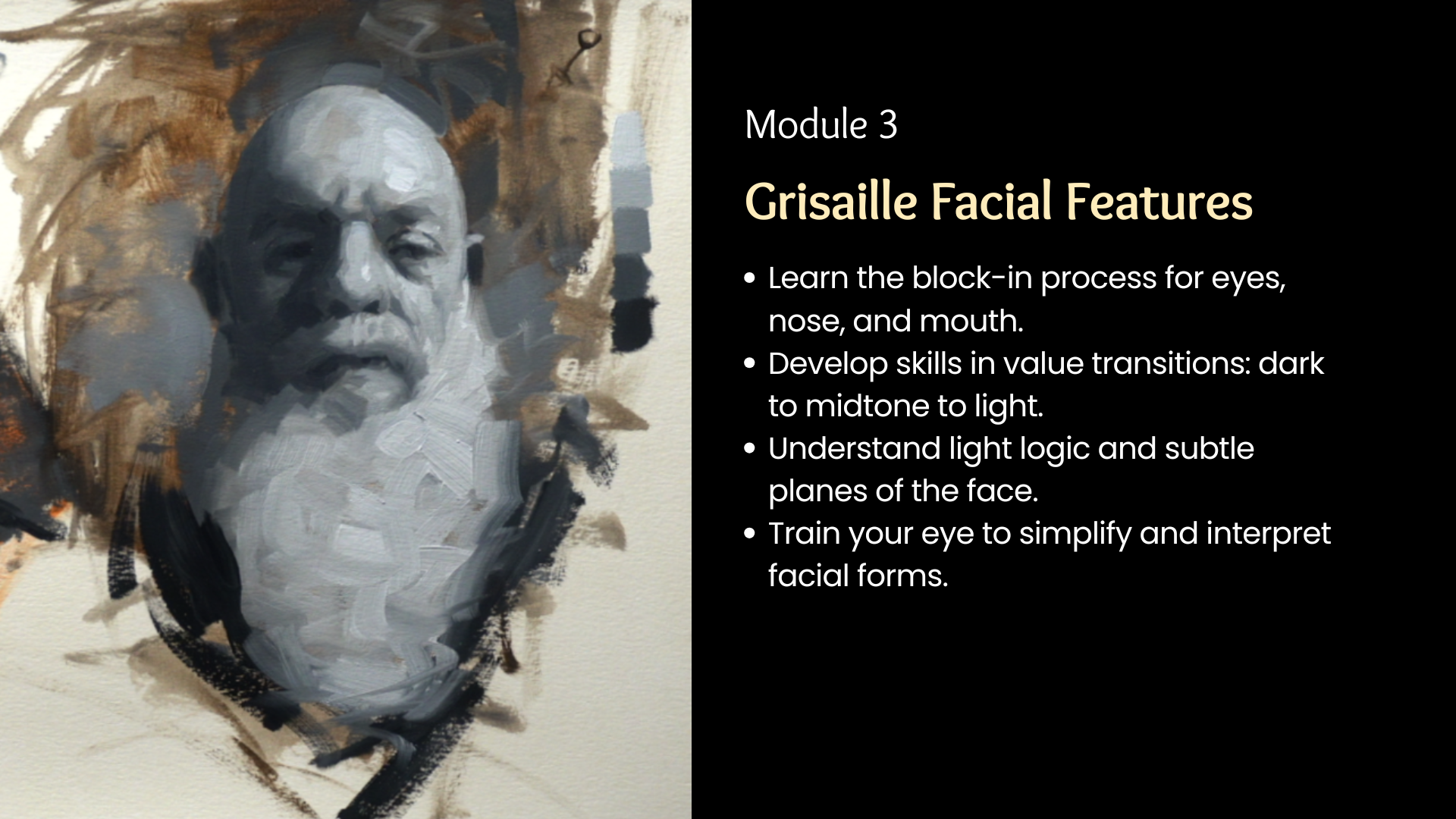 Imagine sitting down with just a few values, a brush, and a clear sense of what to look for, and slowly watching a face emerge on the canvas through light, shadow, and structure.